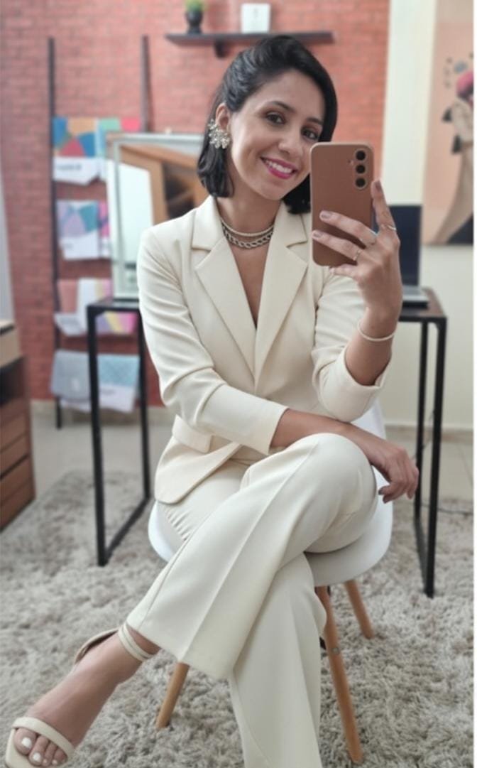 Hoje, une essa vivência ao universo da imagem pessoal para ajudar mulheres a se vestirem com propósito e a se conectarem novamente com quem realmente são.